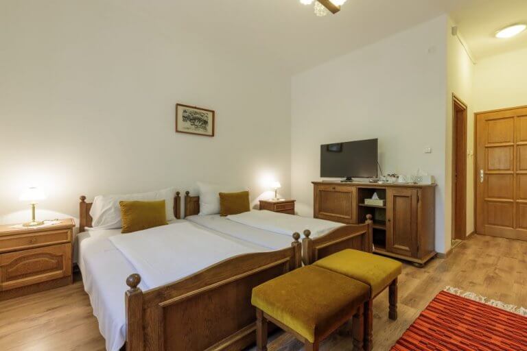 A földszinti Superior szobában igény szerint franciaágy vagy külön álló ágy biztosítja a kényelmes alvást, melyet kiegészít egy két fotelből és kisasztalból álló pihenősarok; a szobához zuhanyzós fürdőszoba tartozik, maximum egy pótággyal bővíthető.